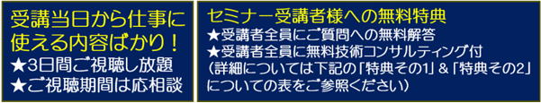 | セミナー形態 | 本セミナーは、最近開催したセミナーのオンデマンドセミナーです。ご視聴開始から3日間は何回でも繰り返しご視聴ができます。 ご視聴開始希望日をお申込みフォーマットの備考欄にご記入頂く様お願い申し上げます。セミナーのご受講お申込み後に当社宛のメール(ktl@r4.dion.ne.jp)にてご連絡頂くこともできます。 |